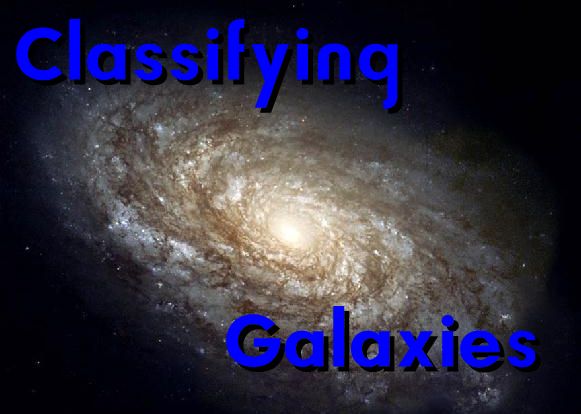 A number of excellent introductions to the morphological classification of galaxies are available on the web. A brief, interactive classification exercise is available at: The Hubble Tuning Fork - classification of galaxies. A more complete introduction to classifying galaxies according to their appearance is: COSMOS Hubble Classification. Visit the COSMOS site and carefully read the descriptions of spiral, lenticular, elliptical, and irregular galaxy classifications. Be sure to note the description of sub-classifications such as the presence of bars in spiral galaxies or the elongation of elliptical galaxies. Carefully note the classification for the various example images, until you are comfortable recognizing the different types.